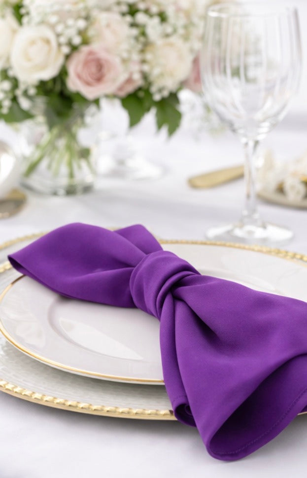 Napkins are a fashionable and functional piece event decor! They're the key to producing an impressive event by providing a pop of color and can be folded to bring extra appeal to your tablescape. Our economical, durable, and easy to fold Polyester Napkins will keep your guests mess free while adding a luxe feel to your event. Easy to care for and maintain, our 100% Polyester Napkins are ideal for use in wedding receptions, baby showers, quinceaneras, rehearsal dinners, birthday parties, catering, and more!
